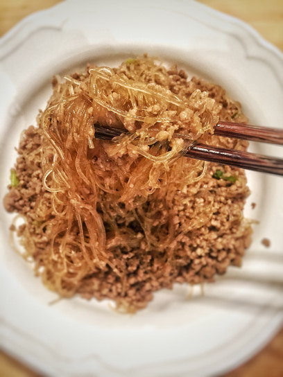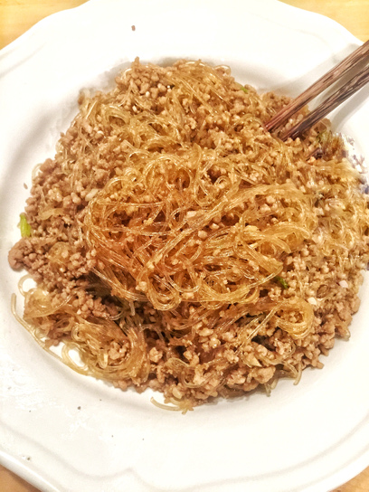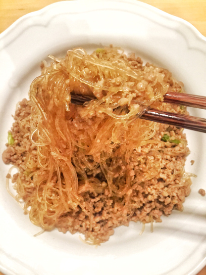Stir fry cellophane noodles with ground pork