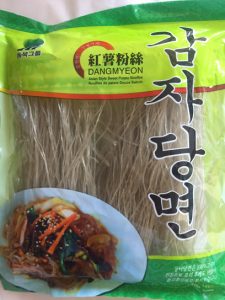 Dangmyeon is a type of cellophane noodles made from sweet potato starch. I like to cook them with vegetables, like this recipe. This is the noodles that I usually use and bought in our local Chinese grocery store.