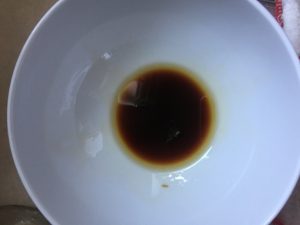 Prepare the soup: take a bowl, add soy sauce and sesame oil, pour the boiling water to the bowl, taste, and adjust with either soy sauce or water to your liking.